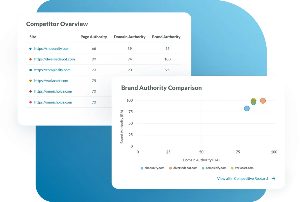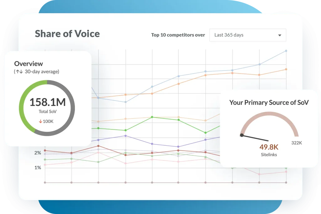 Outrank rivals and grow your market presence with powerful share of voice metrics and robust competitor tracking. Know who you’re up against and how you compare.